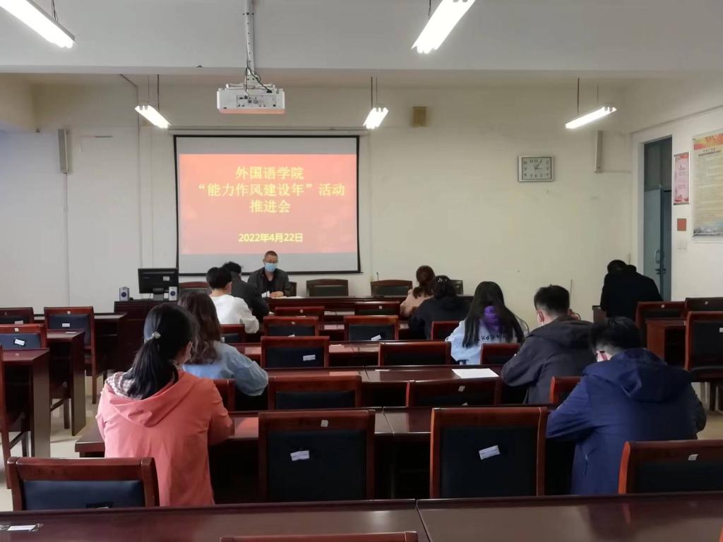 4月22日下午,太阳成集团tyc234cc主页在A-10 205会议室召开 “能力作风建设年” 活动推进会,对开展“能力作风建设年”活动进行再安排、再部署。党总支书记郭强主持会议,公司全体领导班子成员、各教工党支部书记、全体辅导员参加了会议。