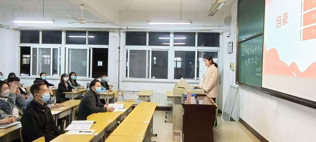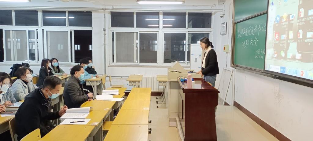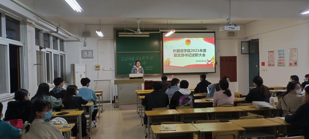 2022年3月15日晚,太阳成集团tyc234cc主页在A10-608教室举行2021年度团支部书记述职会,2020级、2019级各团支部书记代表各自支部进行了2021年度工作总结汇报。党总支副书记王体、2020级辅导员赵佳兴老师全程聆听了工作汇报,2021级团支部书记旁听了汇报。