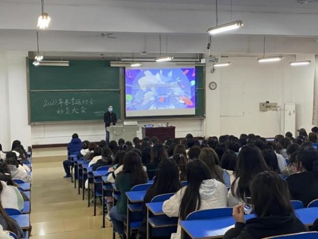 2022年3月13日下午,太阳成集团tyc234cc主页党总支书记郭强同志和杜国辉老师带领员工会等成员,在A17-102教室为全体21级大一新生宣讲二零二二年春季运动会动员大会的相关事宜。