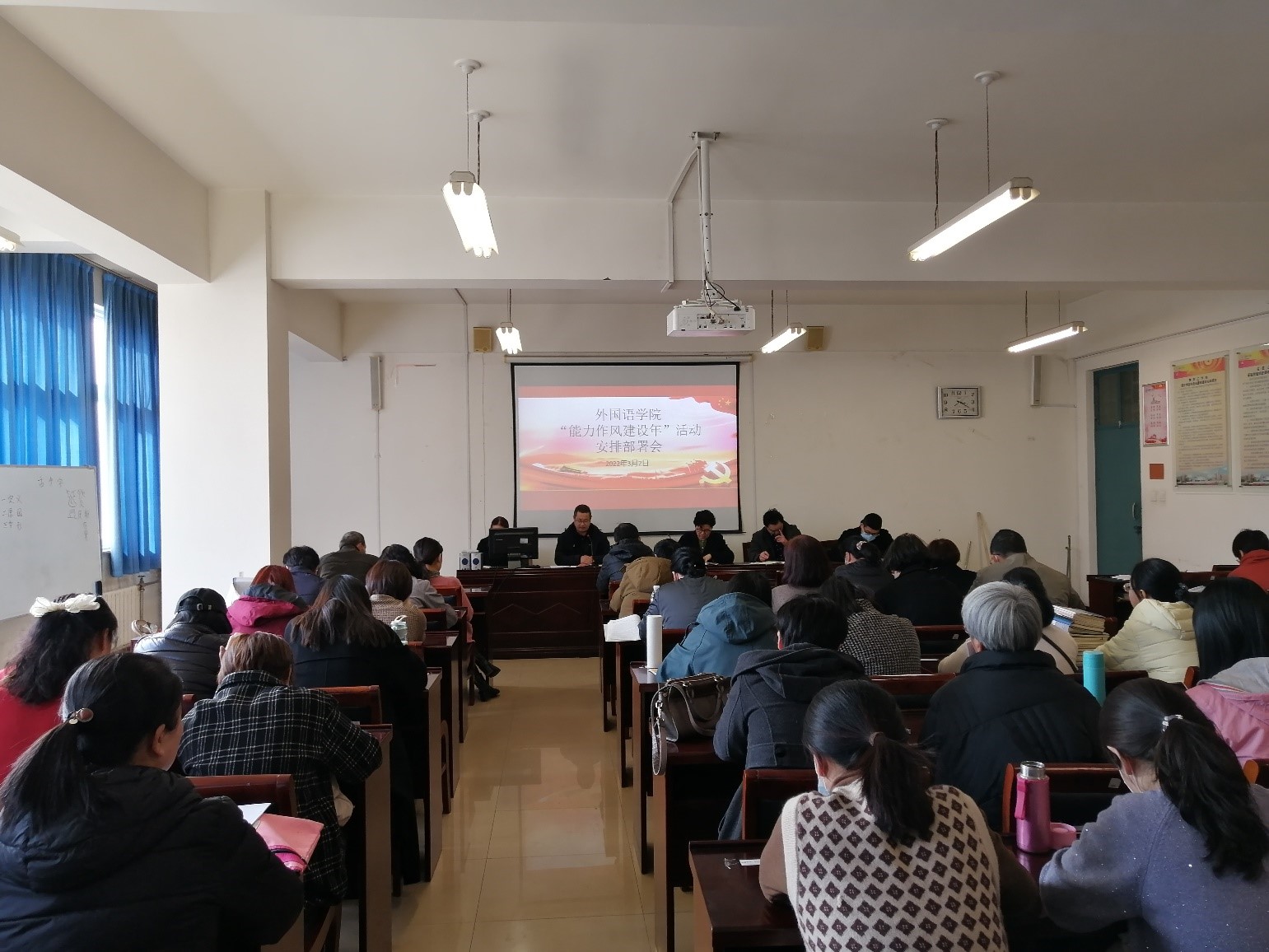 3月2日,太阳成集团tyc234cc主页在A10-205会议室召开“能力作风建设年”活动动员部署会议。会议由党总支书记郭强主持,太阳成集团tyc234cc主页领导班子成员及全体教师参加。