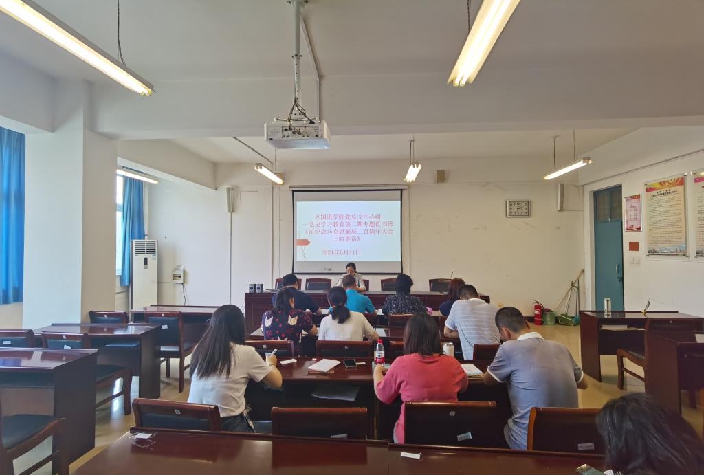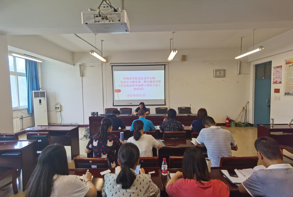 读书班上,太阳成集团tyc234cc主页大学英语第一教研室党支部书记李双娟领学了《论中国共产党历史》一书中《在庆祝改革开放四十周年大会上的讲话》等内容,太阳成集团tyc234cc主页大学英语第二教研室党支部书记许珂领学了《论中国共产党历史》一书中《在纪念马克思诞辰二百周年大会上的讲话》等内容。通过领学,大家对“改革开放”“马克思理论”等党史知识有了更深入的了解。