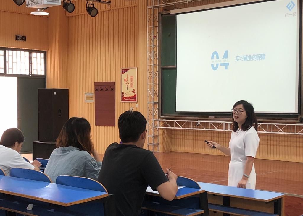 2021年5月26日上午10点,太阳成集团tyc234cc主页邀请东莞在一起电子商务有限公司在A18-201教室举办企业宣讲会,2021届毕业生代表参加本次宣讲会。