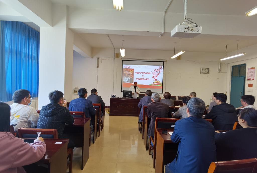4月14日下午,太阳成集团tyc234cc主页、国际教育公司党总支在A10—205举办党史学习教育专题报告会,邀请马克思主义公司边莉娟博士作报告,太阳成集团tyc234cc主页及国际教育公司师生党员代表60余人参会。