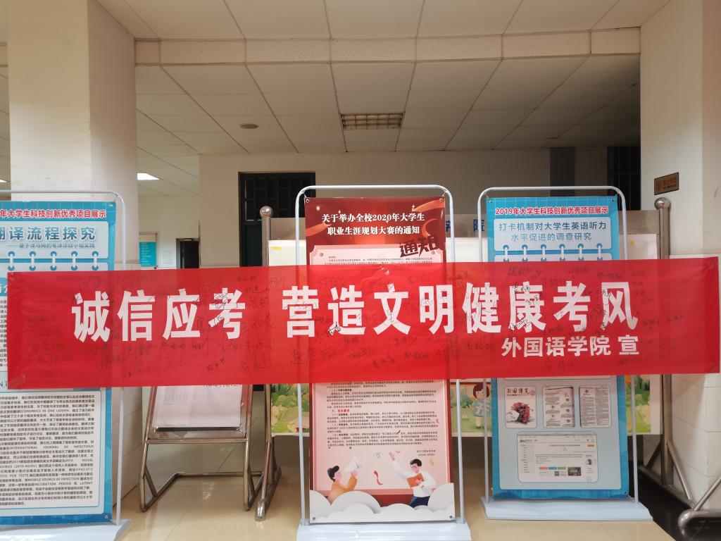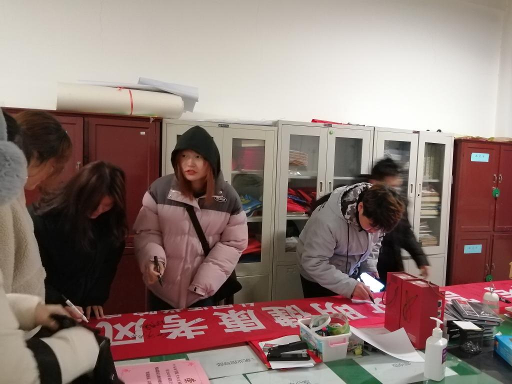 在有序组织下,全院同学在写着“诚信应考,营造文明健康考风”的横幅上认真地签下自己的名字,以表达自己在即将来临的期末考试中诚信应考的决心。