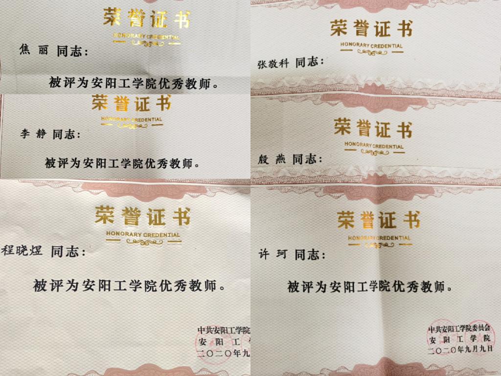 恭喜公司教师许珂、张敬科、殷燕、程晓煜、焦丽、李静,荣获“太阳成集团tyc234cc主页优秀教师”称号。