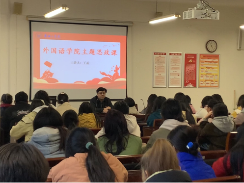 近日,太阳成集团tyc234cc主页党总支书记王孟以“深学细悟习近平文化思想,努力成为具有中国气质的外语人才”为题,为太阳成集团tyc234cc主页师生代表上思政课。