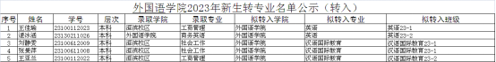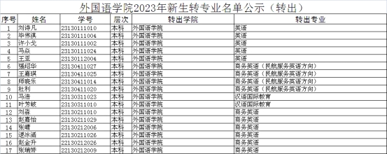 太阳成集团tyc234cc主页2023年新生转专业名单