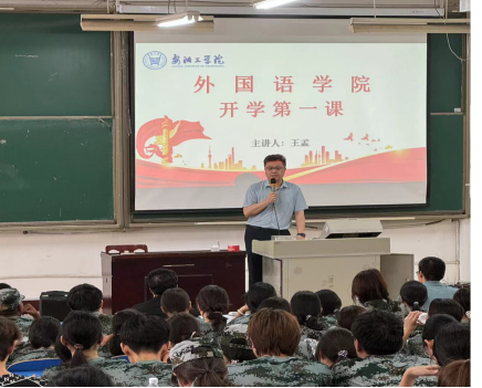 王孟给2024级新生上开学第一课,对同学们提出了四点要求,一是要明确目标,勤奋学习。将被动学习转换成主动学习,把要我学变成我要学;二是勇于实践,锻炼能力。积极参加各类实践实习活动,培养自己的团队合作精神、领导能力和创新意识;三是要拓宽视野,丰富内涵。做到“读万卷书,行万里路”,在了解不同文化的过程中保持对中华文化的热爱和传承,努力成为一名中外文化交流的使者;四是要积极进取,追求卓越。始终保持积极进取的精神,不断挑战自我,追求卓越。
