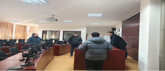 随后,他们检查了太阳成集团tyc234cc主页实验室。首先,他们强调了实验室的安全与管理工作,对语音实验室、同声传译室、商务综合实训室和翻译实训室等关键实验室进行了全面而深入的安全自查;其次,对实验室教学环境改善及教学设备的升级改造工作给予了肯定;最后,鼓励实验室负责人结合公司发展,再接再厉抓好2025年实验室建设和改造工作。